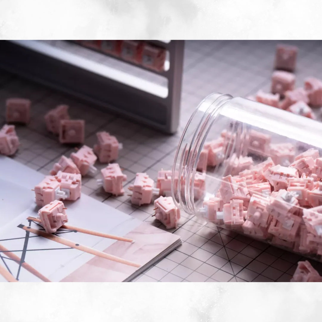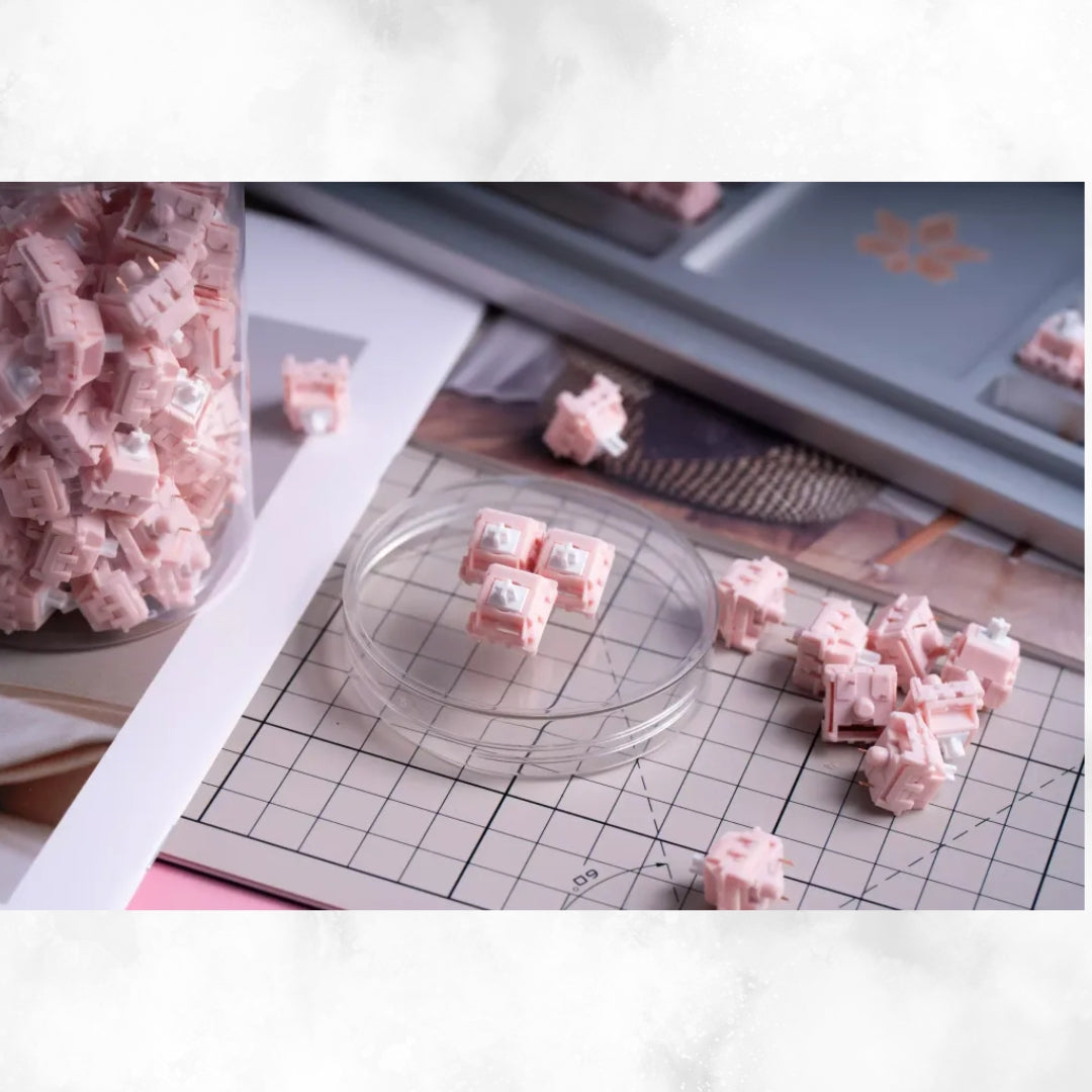 The KTT Sakura switches are linear mechanical keyboard switches designed to deliver a smooth typing feel with a soft sound profile, making them ideal for offices, shared spaces, or quiet environments.